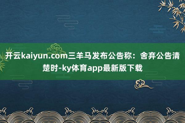 开云kaiyun.com三羊马发布公告称:舍弃公告清楚时-ky体育app最新版下载
