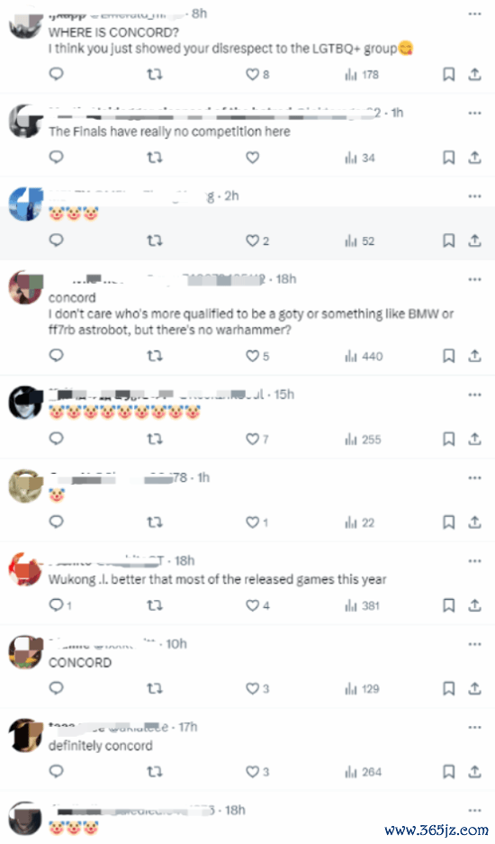 有网友嘲讽到:“提名中为什么莫得《星鸣特攻》,这是对LGBTQ东谈主士的不尊重。”还有玩家提到,年度游戏提名莫得《黑传闻》竟然太搞笑了,当今全寰宇玩家齐在等着看你们的见笑。