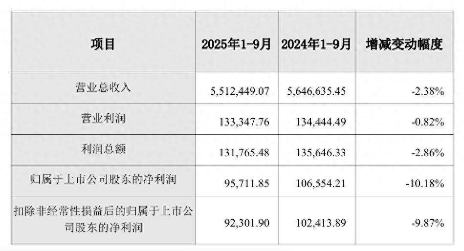 10月21日盘后,国药一致(深市代码:000028)发布功绩快报称,2025年1至9月,公司已矣买卖收入551.24亿元,同比下落2.38%;包摄于上市公司激动的净利润9.57亿元,同比下落10.18%,相应的基本每股收益同比下落9.95%,加权平均净金钱收益率同比下落0.70个百分点。