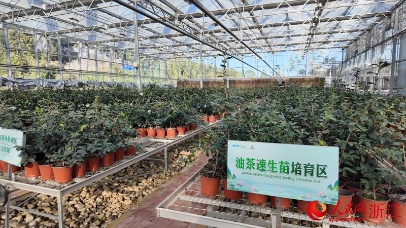 浙江省油茶良种繁育基地里,油茶苗长势正旺。东谈主民网 程欣摄